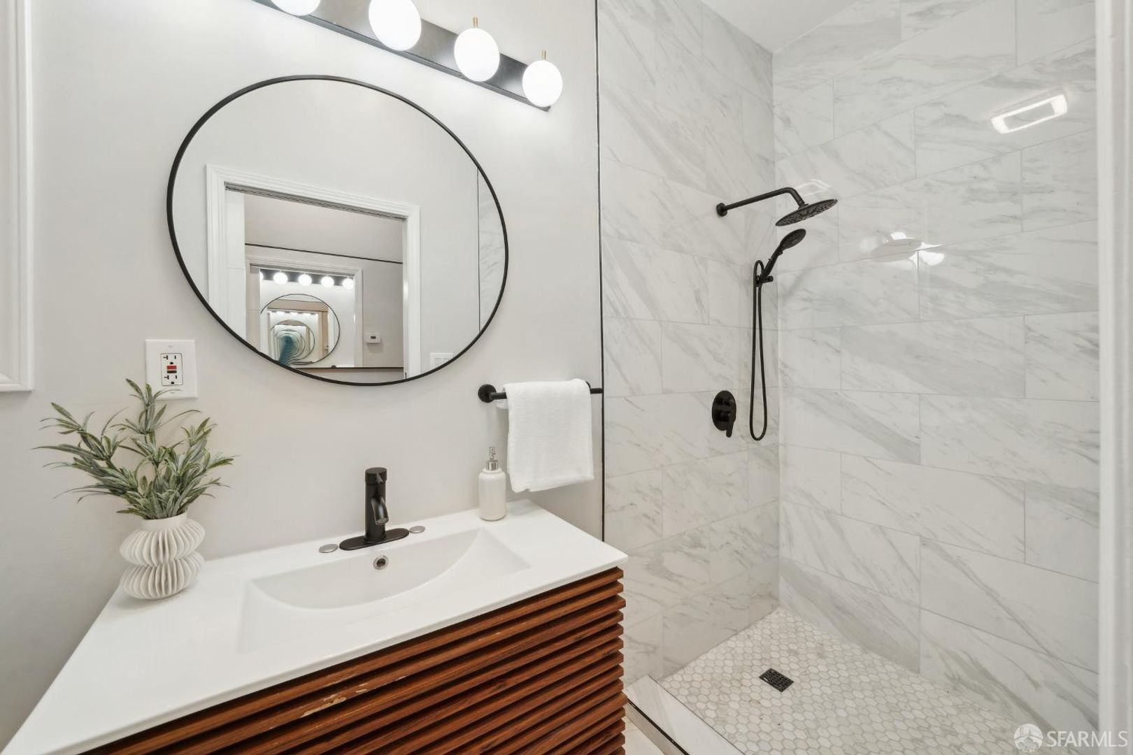 -1 completely remodeled bathroom with vanity, modern finishes and large stall shower