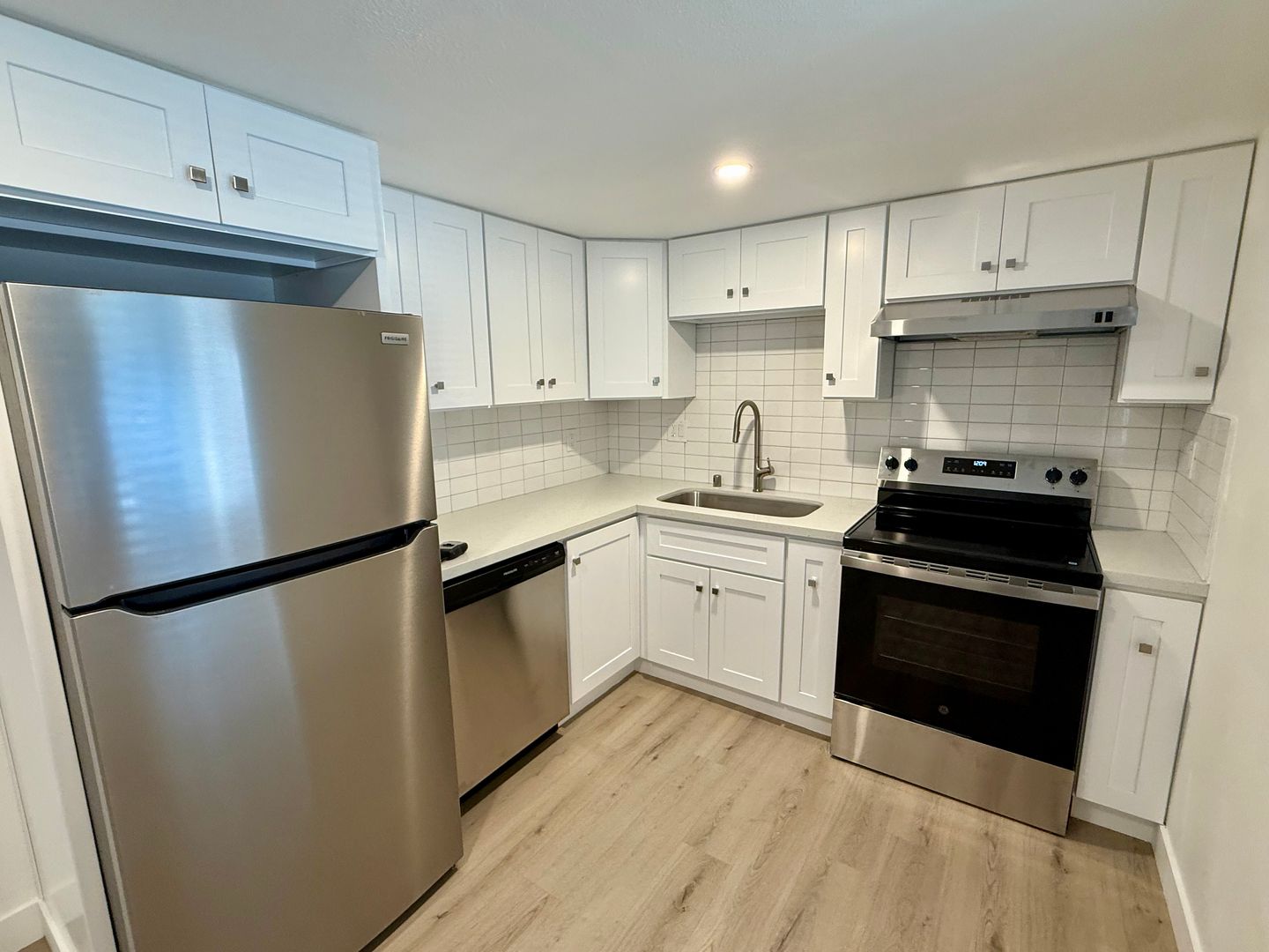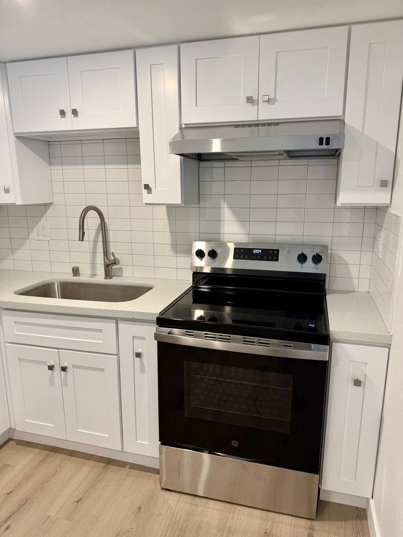 *Large completely remodeled kitchen. Features new cabinets, quartz counters, stainless steel appliances, room for a small table.