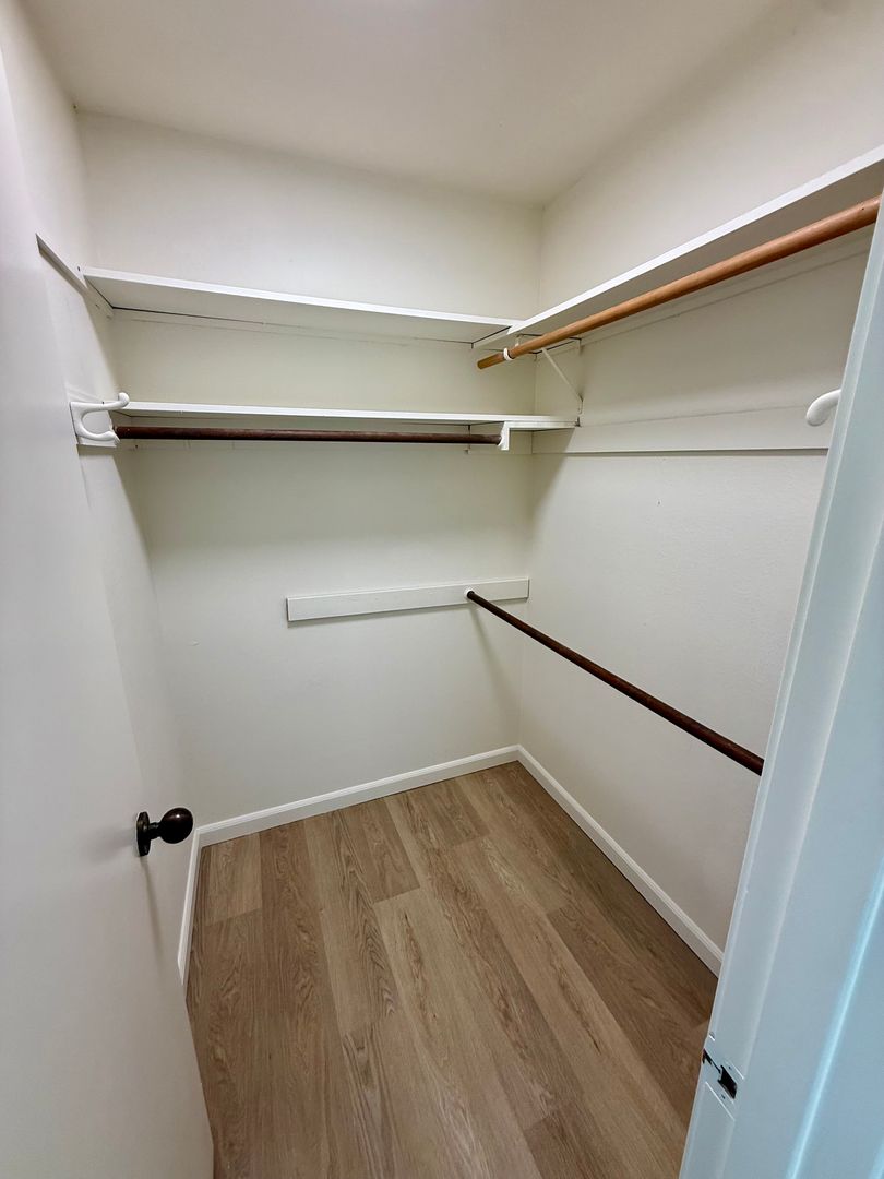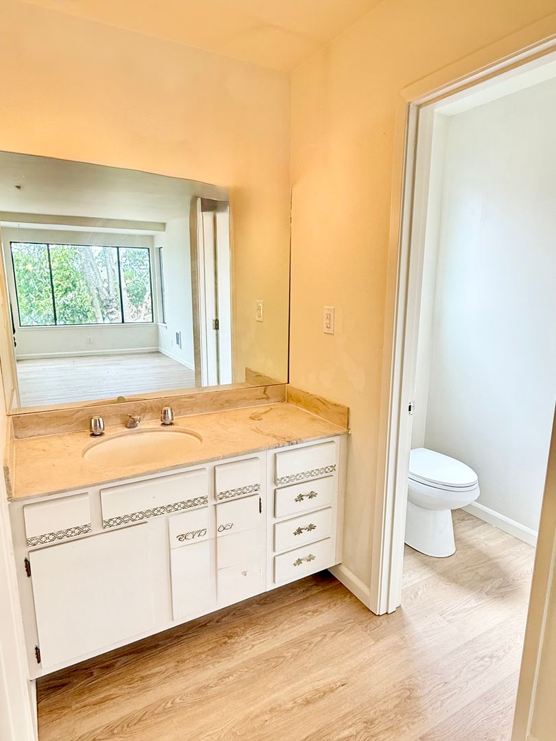 -Spacious primary suite with bay window, large walk-in closet and attached half bath with vanity.
