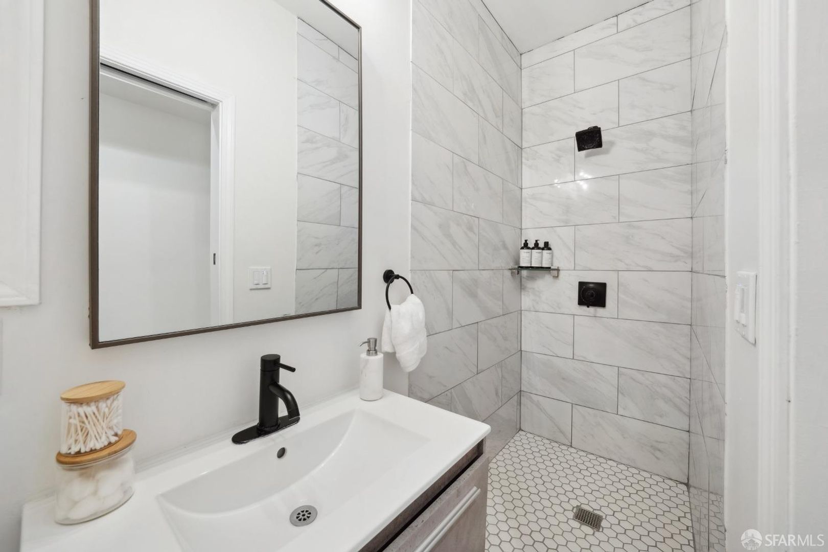 -1 completely remodeled bathroom with vanity, modern finishes and large stall shower