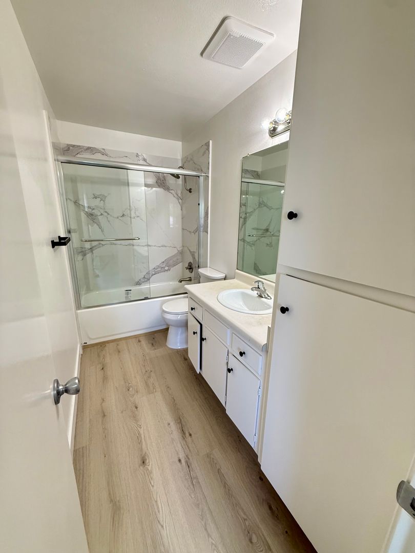 *Remodeled bathroom w/shower over tub, vanity & additional cabinetry for extra storage.