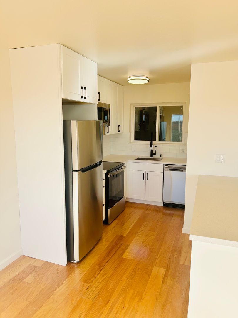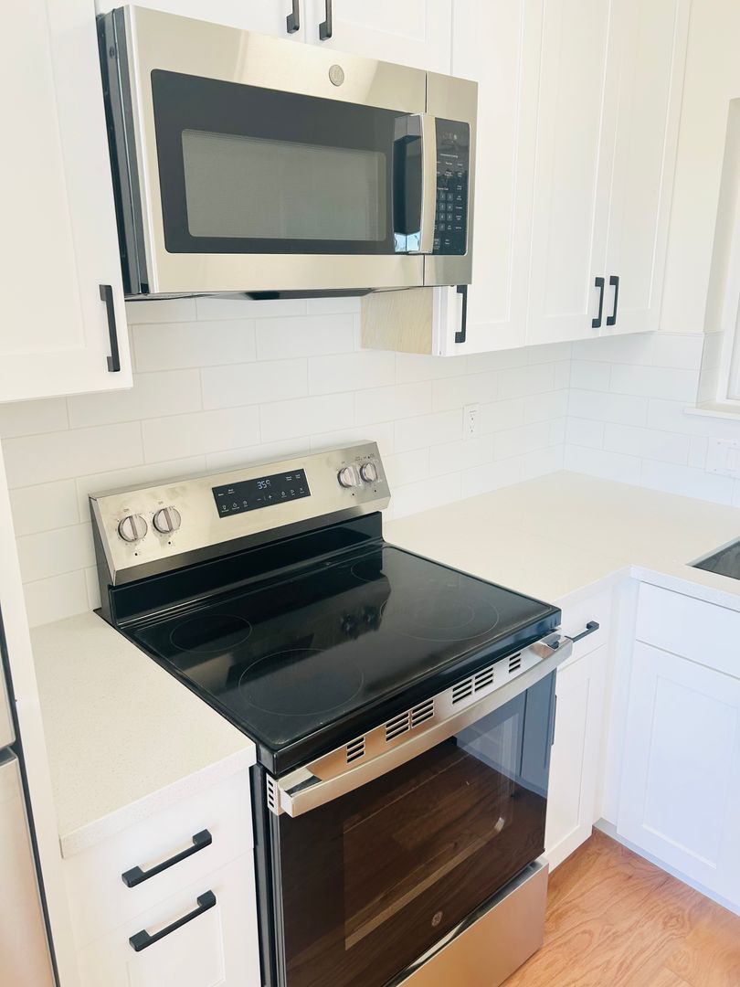 -Chef's kitchen completely remodeled with quartz counters, white shaker cabinets, new stainless steel appliances, island seating