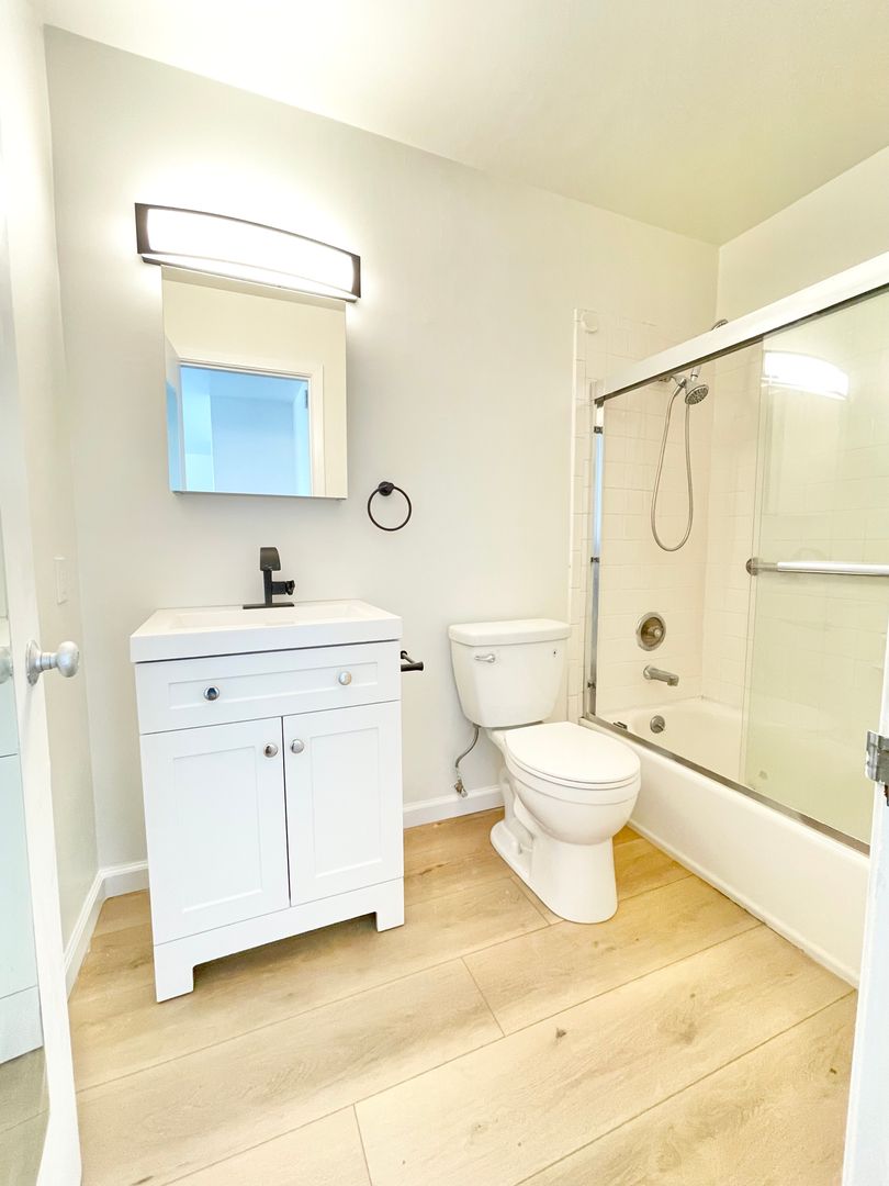 -Remodeled bathroom with shower over tub, new vanity