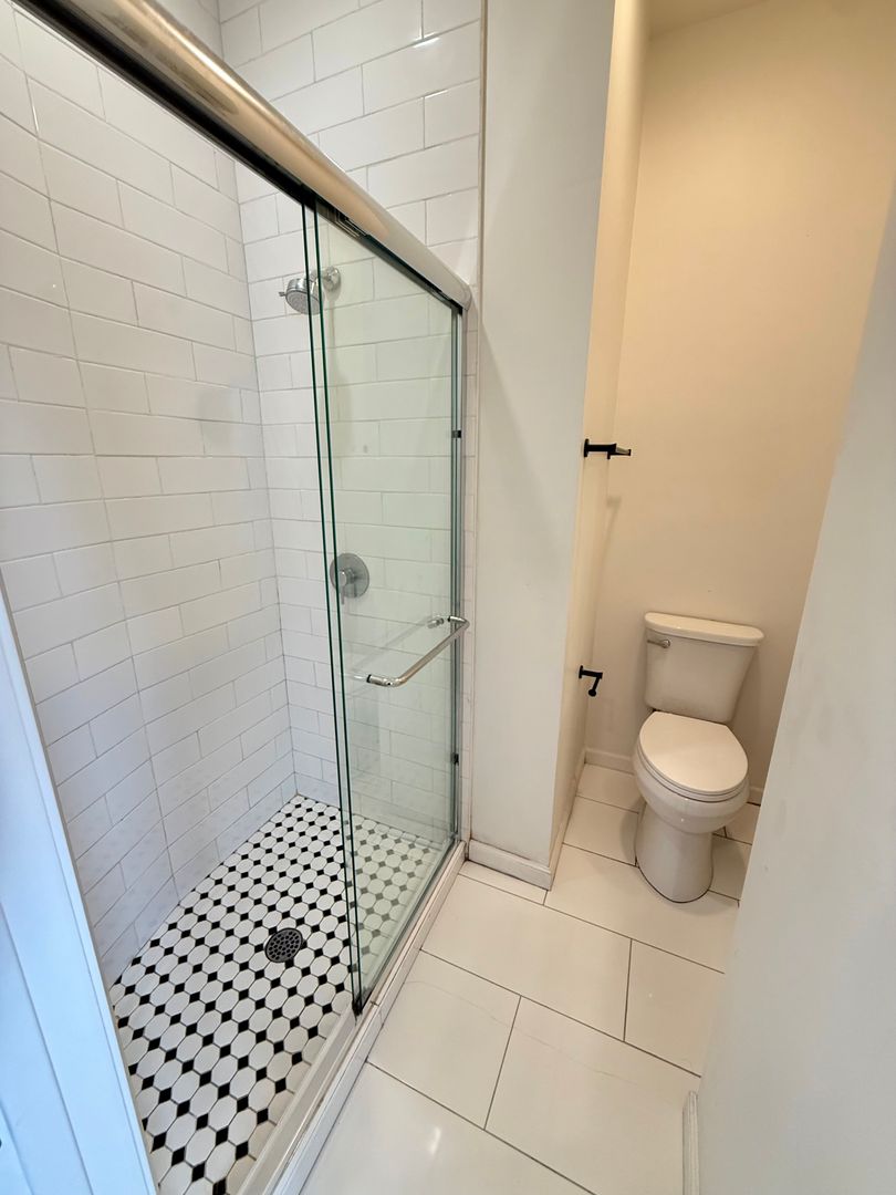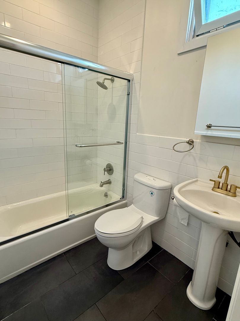 -2 completely remodeled bathrooms (primary suite has walk -in shower, guest bath has shower over tub) with subway tiles, pedestal sink.