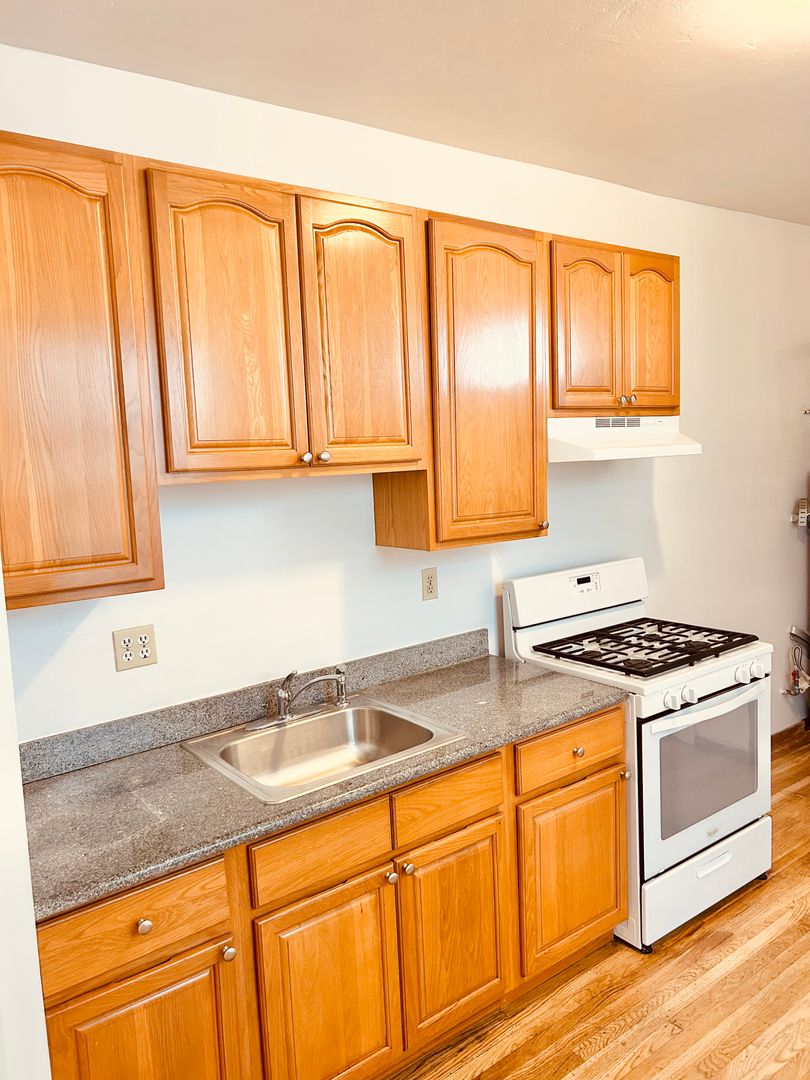 - Spacious kitchen with gas stove and plenty of cabinet storage.